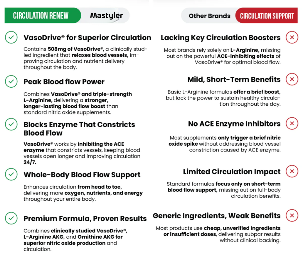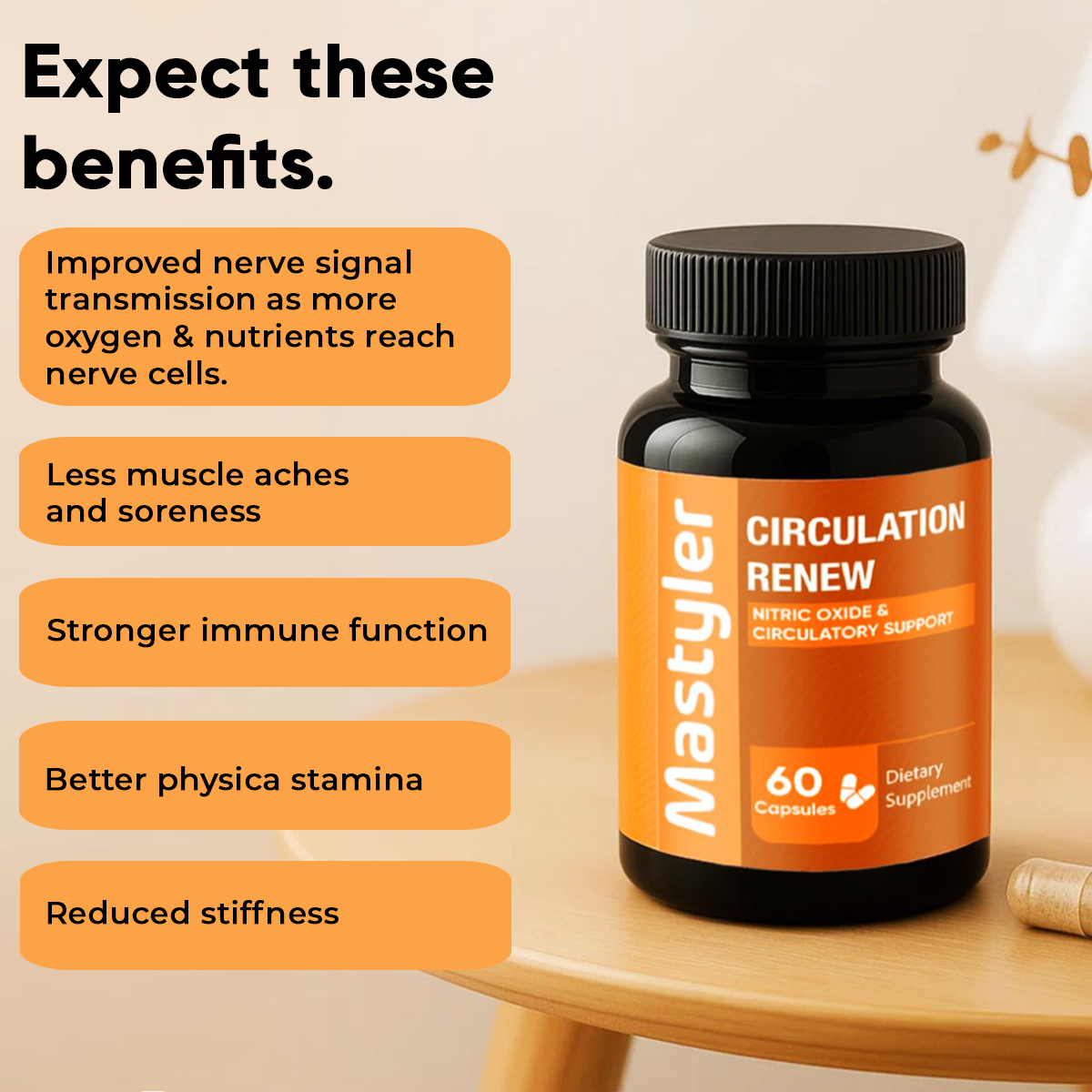 Circulation Renew® is a powerful supplement designed to relax and widen blood vessels to improve blood flow, support cardiovascular health, and enhance overall well-being.