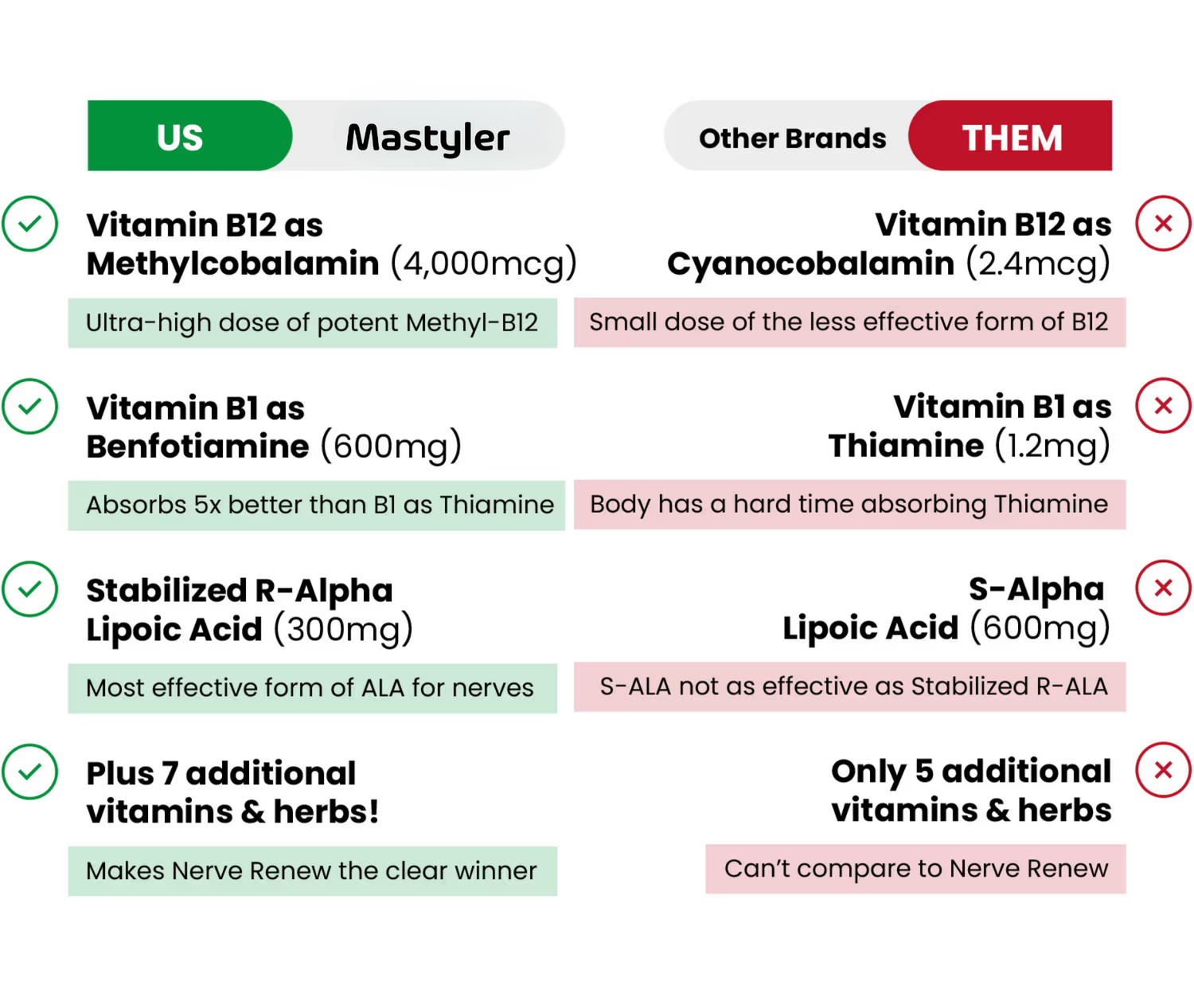 Mastyler contains an ultra-high dose of 4mg per serving, making it a powerful ally in your fight against nerve discomfort, numbness, and muscle weakness.